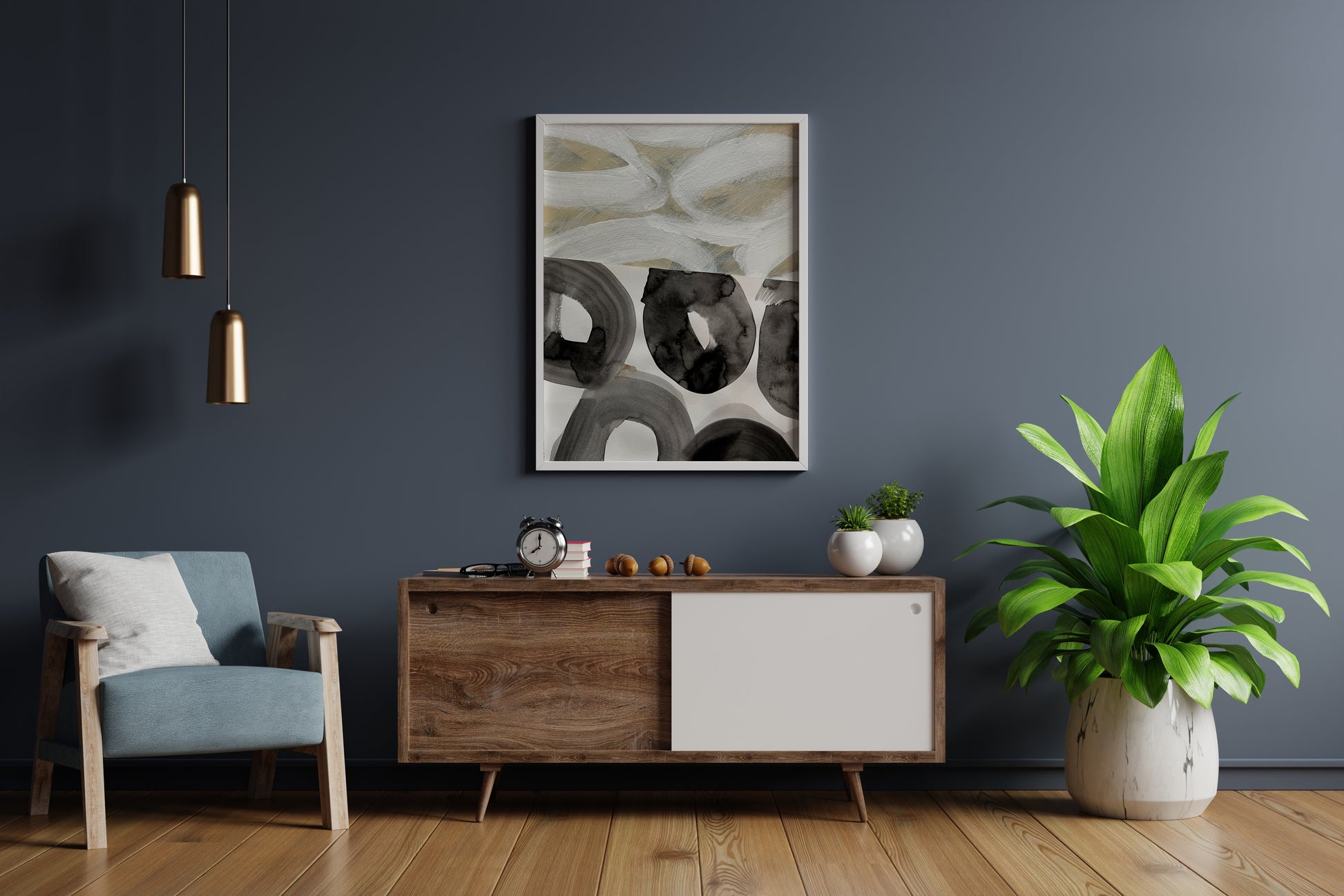 - Description: This abstract piece features a blend of black and gray tones in a minimalistic and elegant design. It adds a sense of balance and sophistication to the space, complementing modern and contemporary interiors.