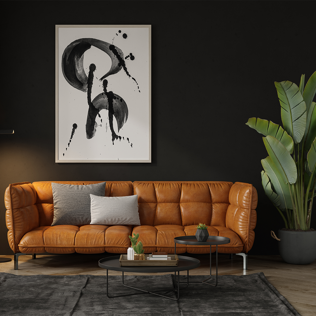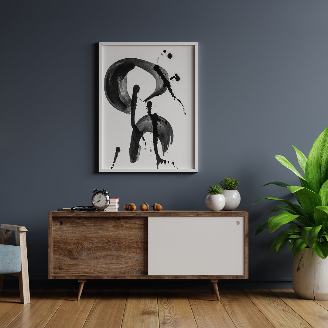 Description: A bold and striking abstract black-and-white ink painting that embodies movement and creativity. Its simplicity adds a touch of sophistication and modernity to your decor.
